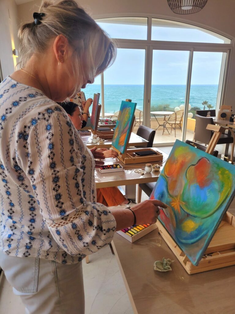 • Live-painting participatif : création d’une toile grand format en direct, où chacun peut contribuer à l’œuvre ou profiter du spectacle vivant. Il stimule la cohésion, la créativité et laisse un souvenir collectif unique : une œuvre inspirée par la Méditerranée et la nature.