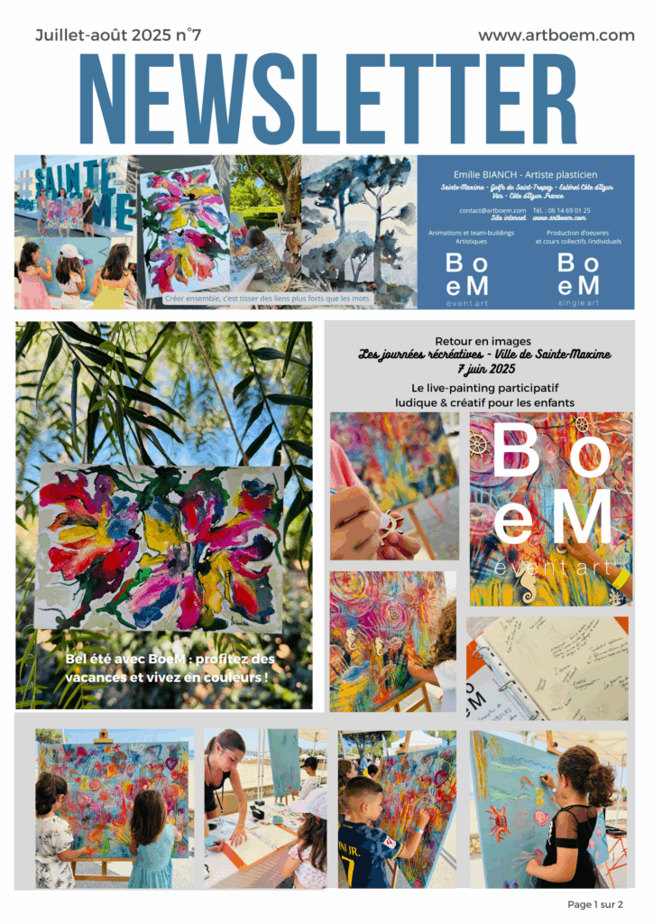 Vivez un été haut en couleurs : créations vibrantes, animations artistiques et belles découvertes au rendez-vous 🎨✨